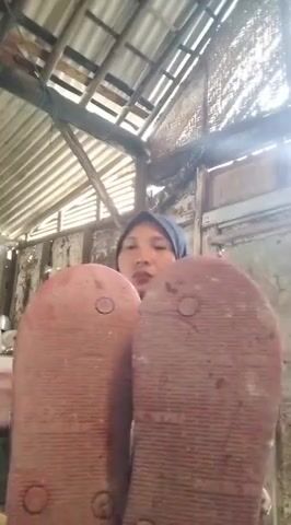 A lady in black hijab showing her big sexy wrinkled soles in room